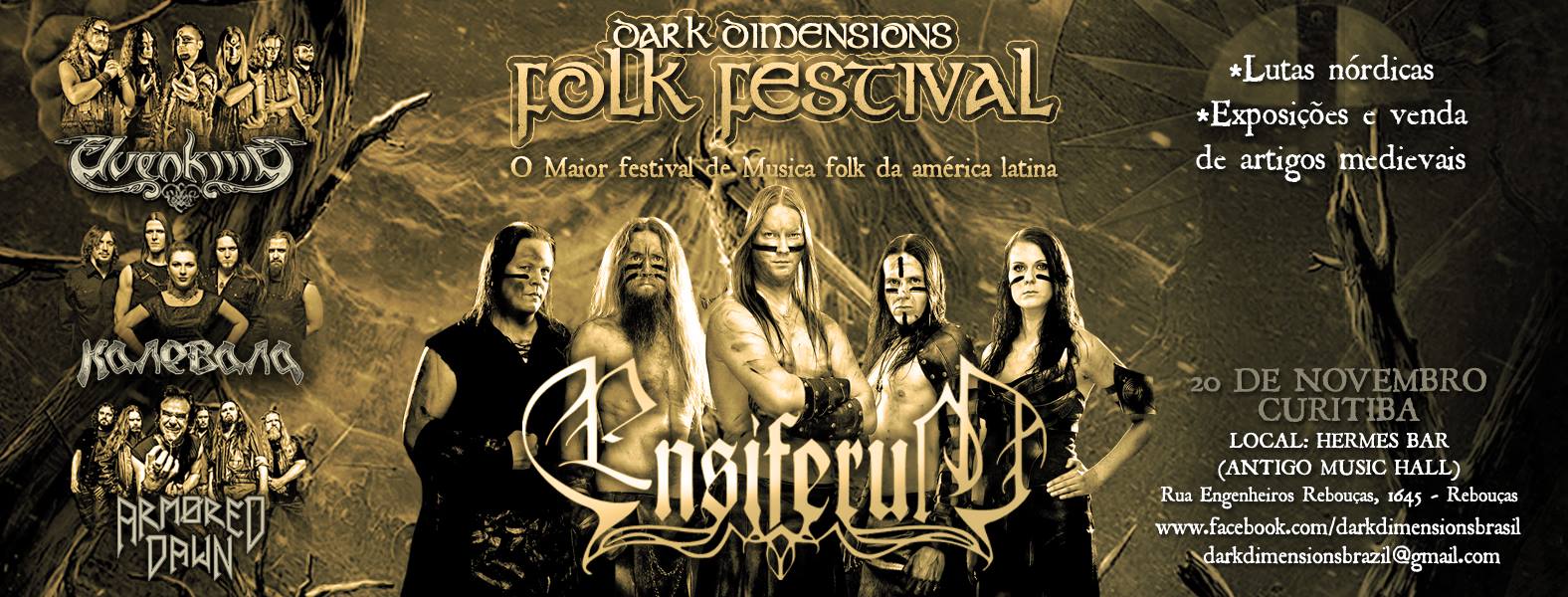 É isso mesmo, a partir de hoje, dia 18 de outubro você não paga mais a taxa de conveniência ao comprar o seu ingresso para Dark Dimension Festival que acontece em Curitiba no dia 20 de novembro no Hermes Bar com as bandas Ensiferum, Elvenking ,Kalevala e Armored Dawn